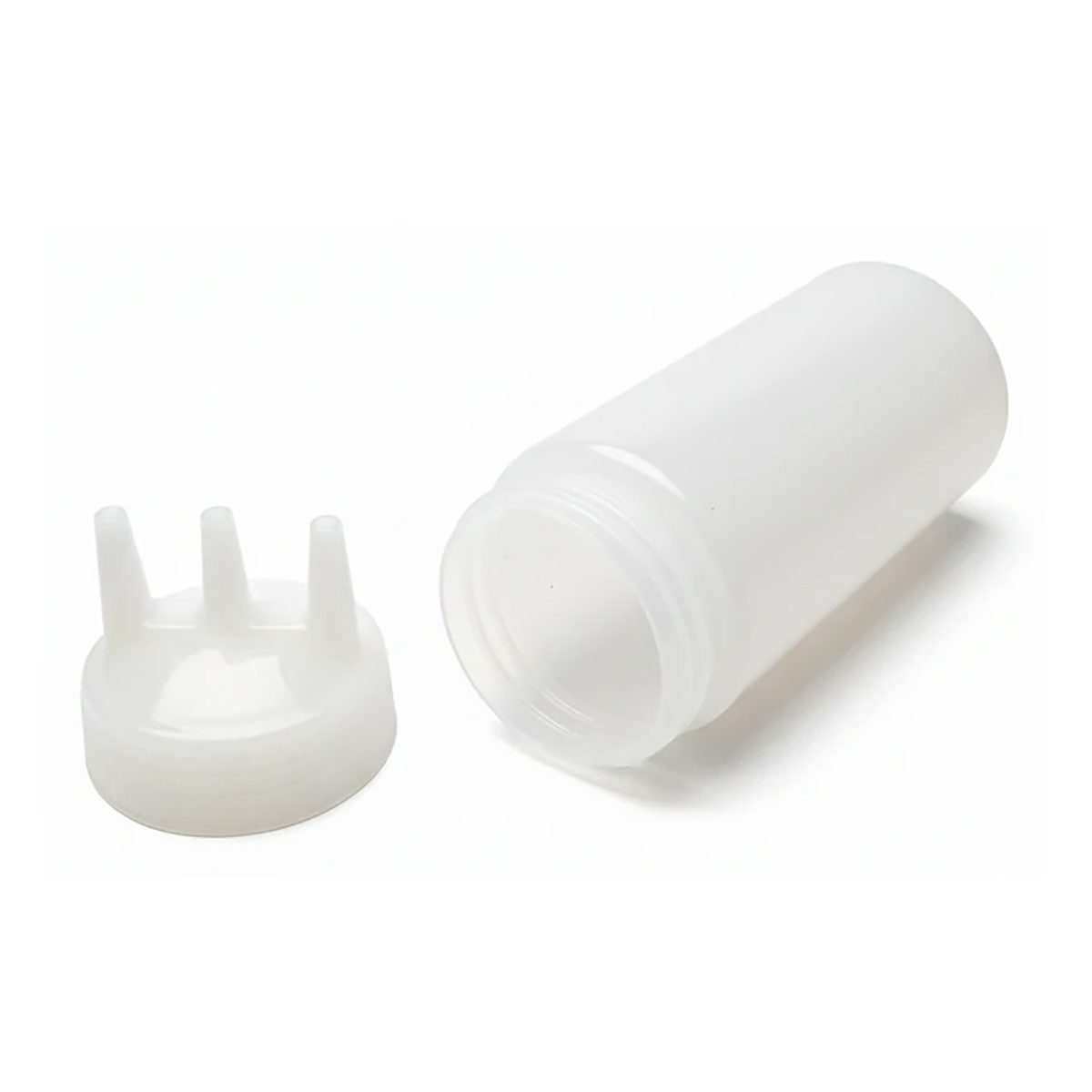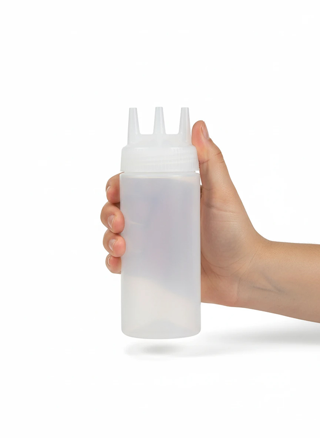 - طراحی منحصر به فرد : بطری سس سه شاخک سفید تک TAK با طراحی زیبا و جذاب ، شکل سه شاخک بطری به شما امکان میدهد به صورت دقیق و متناسب سس را ریخته و سرو کنید . همچنین بعلت اینکه دارای 3 عدد خروجی میباشد بهترین گزینه برای برای آماده سازی پیتزا و انواع سالاد میباشد