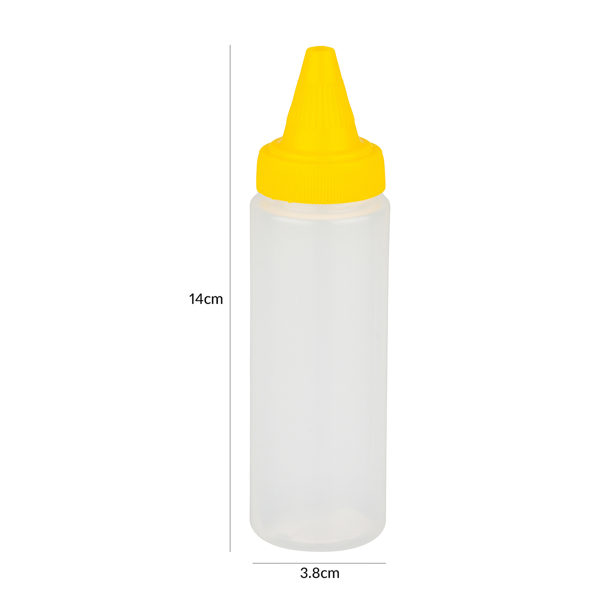بطری پلاستیکی 100 سی سی تک با وزن 19 گرم ارتفاع 14 سانتیمتر و قطر 4 سانتیمتر از مواد نو پلی پروپیلن ساخته شده است . این مدل بطری پلاستیکی بدلیل داشتن درب قفل شو که دارد بهترین انتخاب برای دلیوری و ارسال انواع سس ، روغن ، آبلیمو ، عسل ، رب انار ، شیره انگور و انواع مایعات میباشد