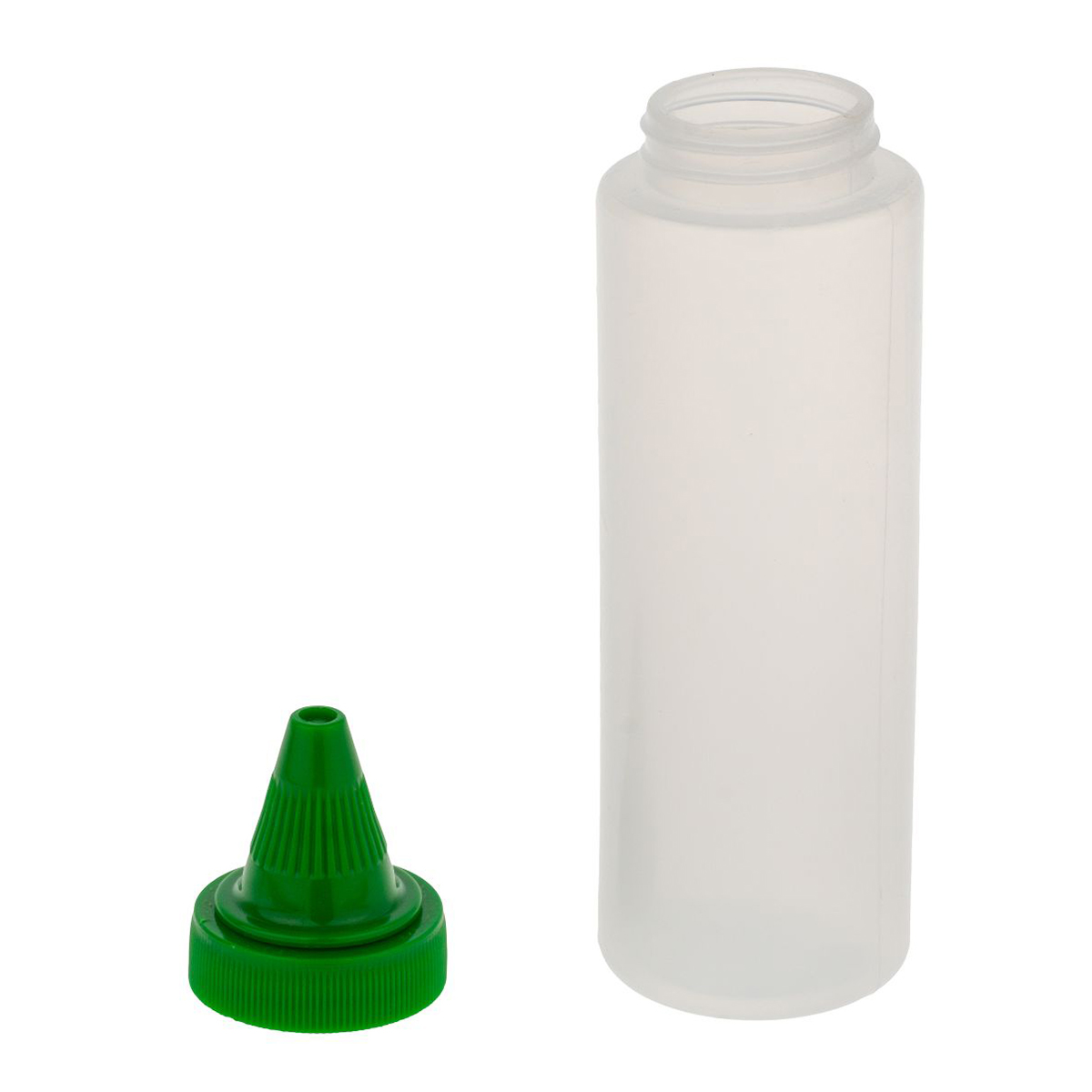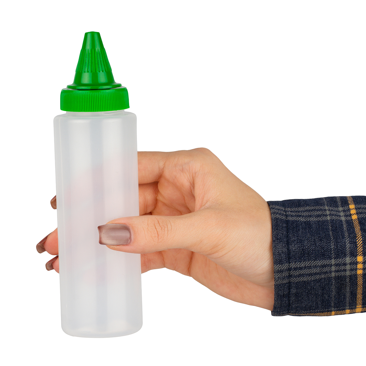 بطری پلاستیکی 150 سی سی تک با وزن 23 گرم ارتفاع 15/5 سانتیمتر و قطر 4/3 سانتیمتر از مواد نو پلی پروپیلن ساخته شده است . این مدل بطری پلاستیکی بدلیل داشتن درب قفل شو که دارد بهترین انتخاب برای دلیوری و ارسال انواع سس ، روغن ، آبلیمو ، عسل ، رب انار ، شیره انگور و انواع مایعات میباشد