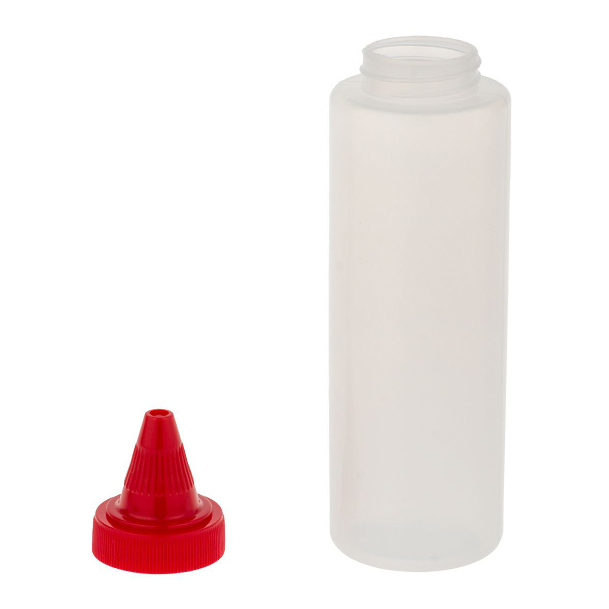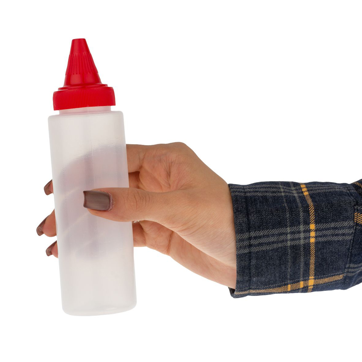 بطری پلاستیکی 150 سی سی تک با وزن 23 گرم ارتفاع 15/5 سانتیمتر و قطر 4/3 سانتیمتر از مواد نو پلی پروپیلن ساخته شده است . این مدل بطری پلاستیکی بدلیل داشتن درب قفل شو که دارد بهترین انتخاب برای دلیوری و ارسال انواع سس ، روغن ، آبلیمو ، عسل ، رب انار ، شیره انگور و انواع مایعات میباشد