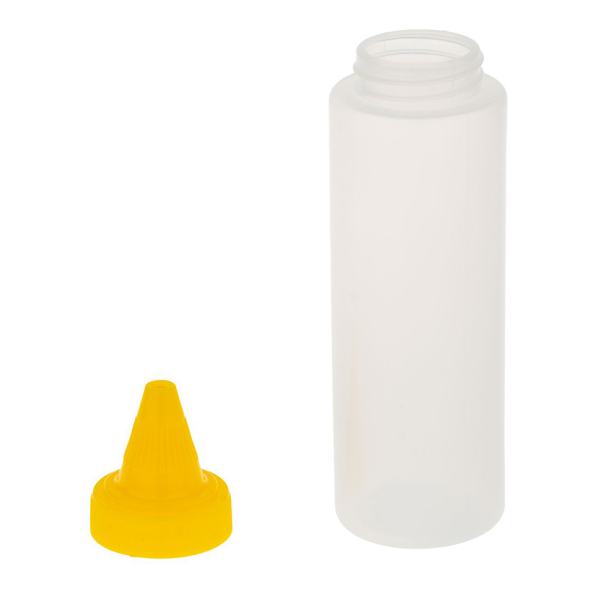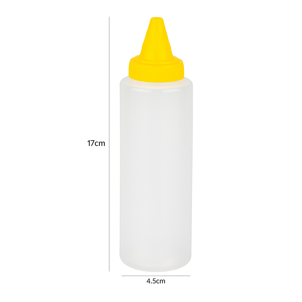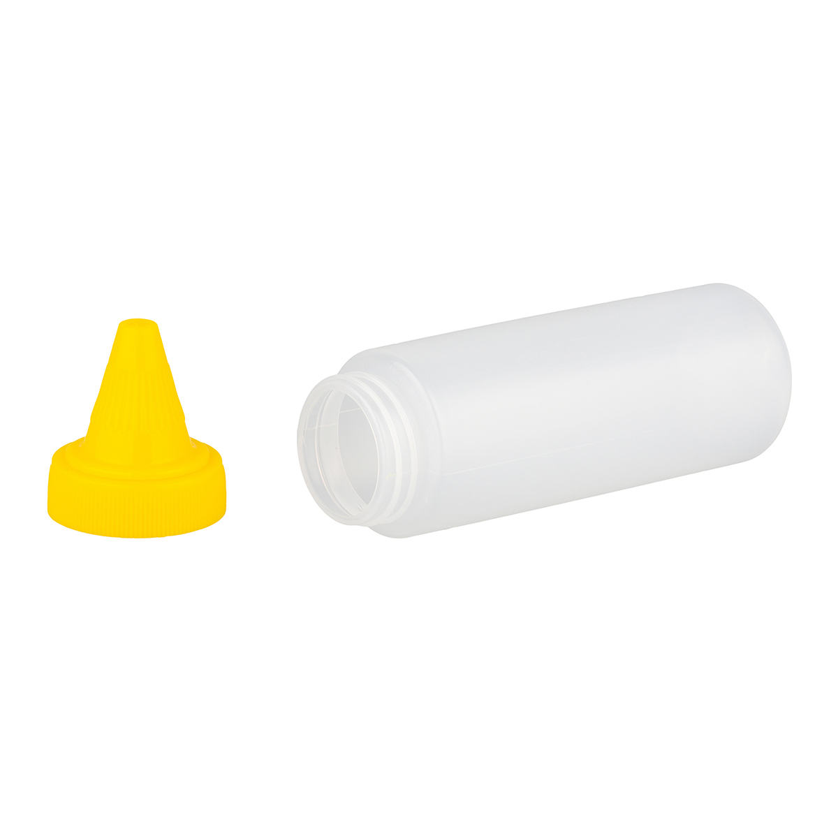 بطری پلاستیکی 200 سی سی تک با وزن 29 گرم ارتفاع 17 سانتیمتر و قطر 4/5 سانتیمتر از مواد نو پلی پروپیلن ساخته شده است . این مدل بطری پلاستیکی بدلیل داشتن درب قفل شو که دارد بهترین انتخاب برای دلیوری و ارسال انواع سس ، روغن ، آبلیمو ، عسل ، رب انار ، شیره انگور و انواع مایعات میباشد