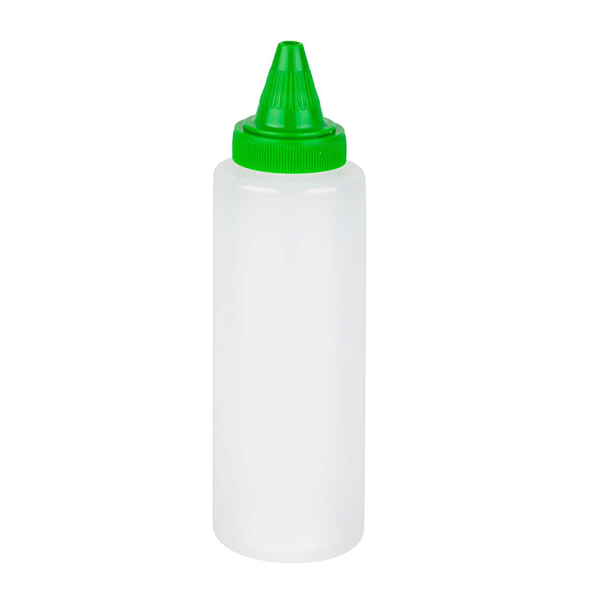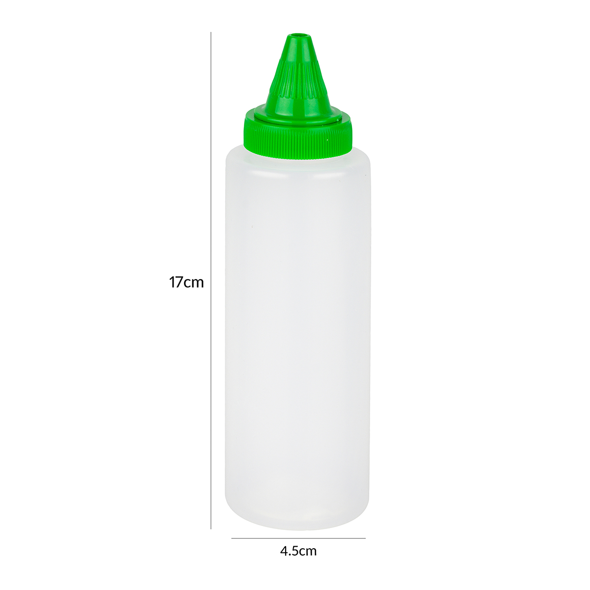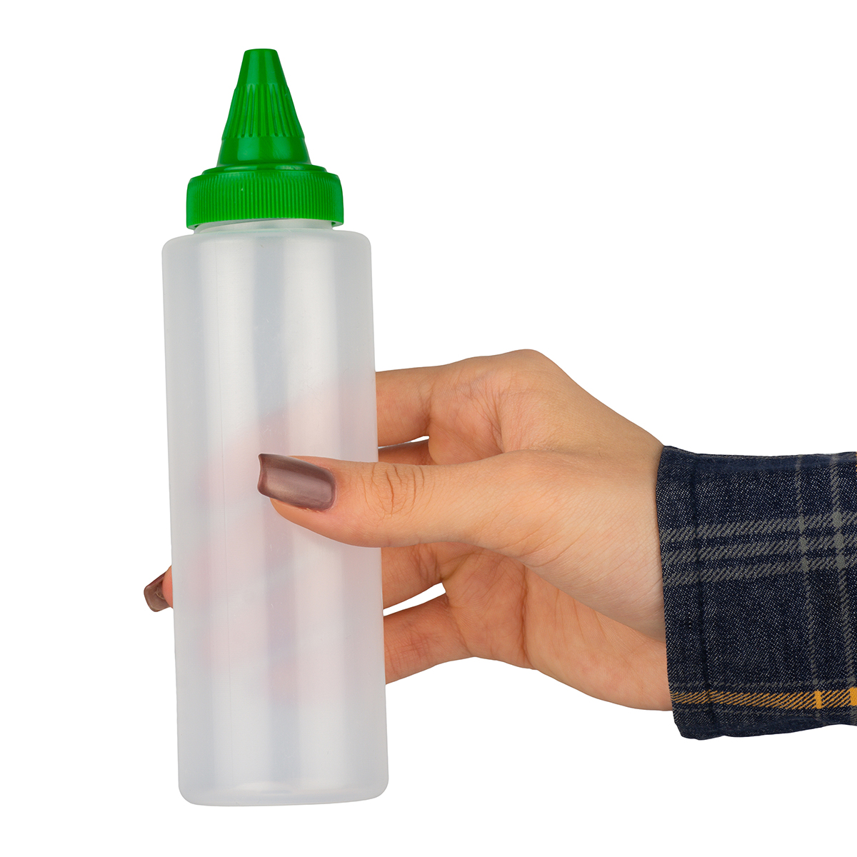 بطری پلاستیکی 200 سی سی تک با وزن 29 گرم ارتفاع 17 سانتیمتر و قطر 4/5 سانتیمتر از مواد نو پلی پروپیلن ساخته شده است . این مدل بطری پلاستیکی بدلیل داشتن درب قفل شو که دارد بهترین انتخاب برای دلیوری و ارسال انواع سس ، روغن ، آبلیمو ، عسل ، رب انار ، شیره انگور و انواع مایعات میباشد