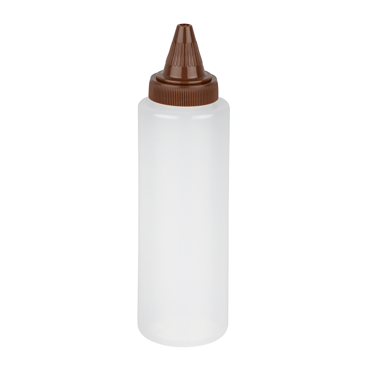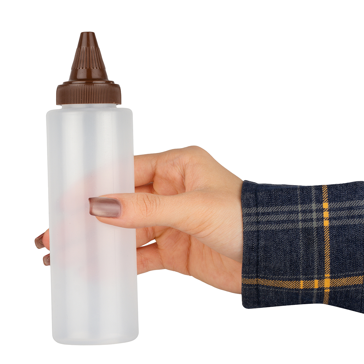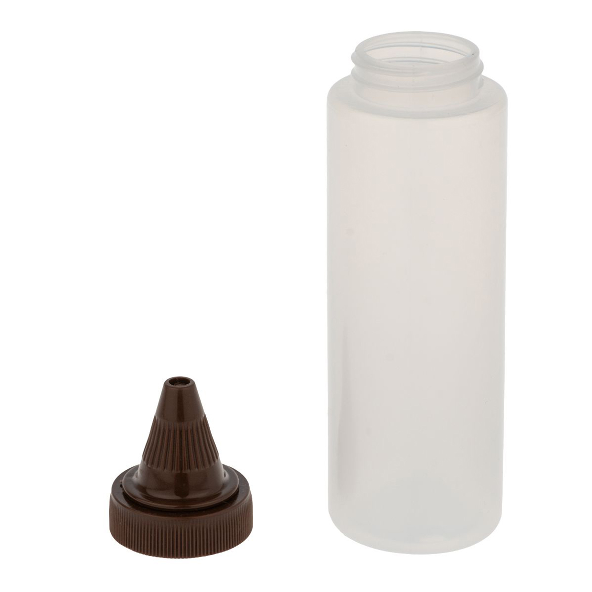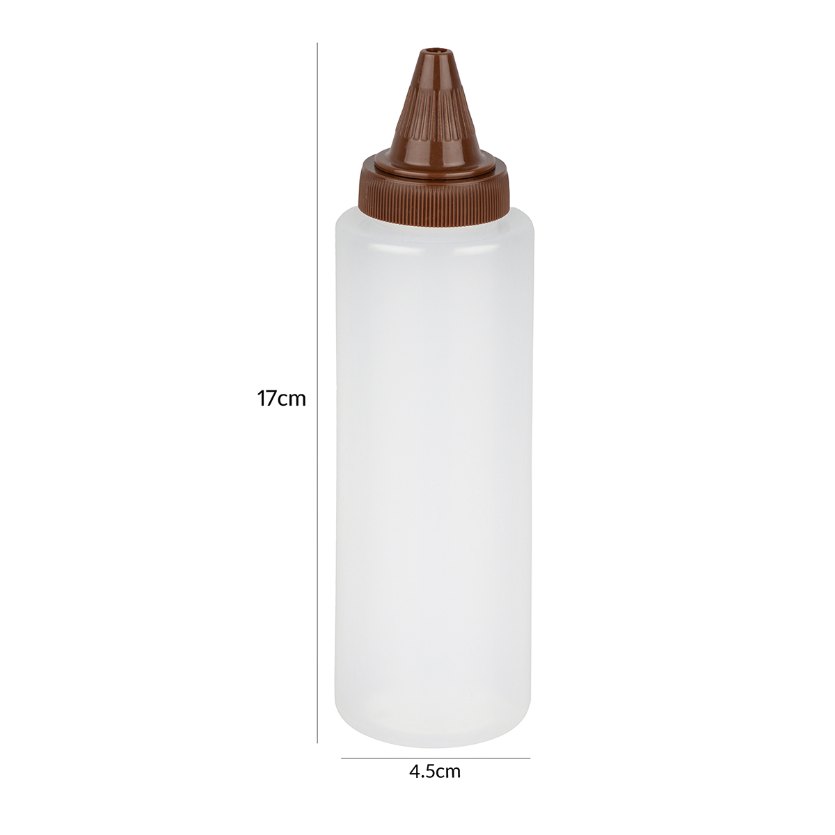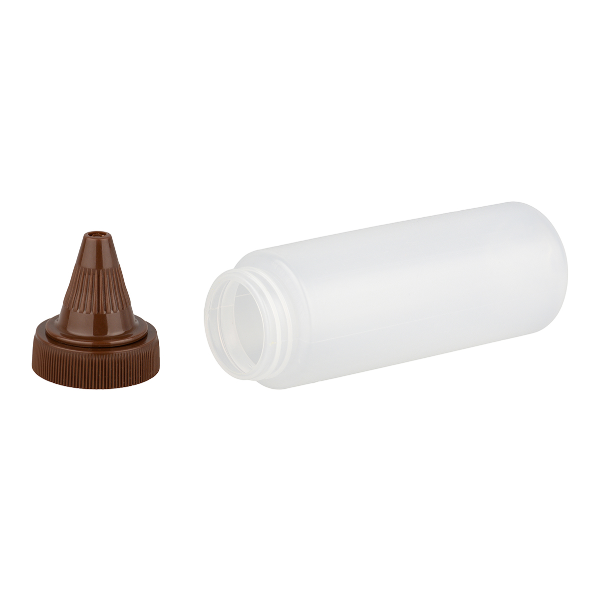 بطری پلاستیکی 200 سی سی تک با وزن 29 گرم ارتفاع 17 سانتیمتر و قطر 4/5 سانتیمتر از مواد نو پلی پروپیلن ساخته شده است . این مدل بطری پلاستیکی بدلیل داشتن درب قفل شو که دارد بهترین انتخاب برای دلیوری و ارسال انواع سس ، روغن ، آبلیمو ، عسل ، رب انار ، شیره انگور و انواع مایعات میباشد